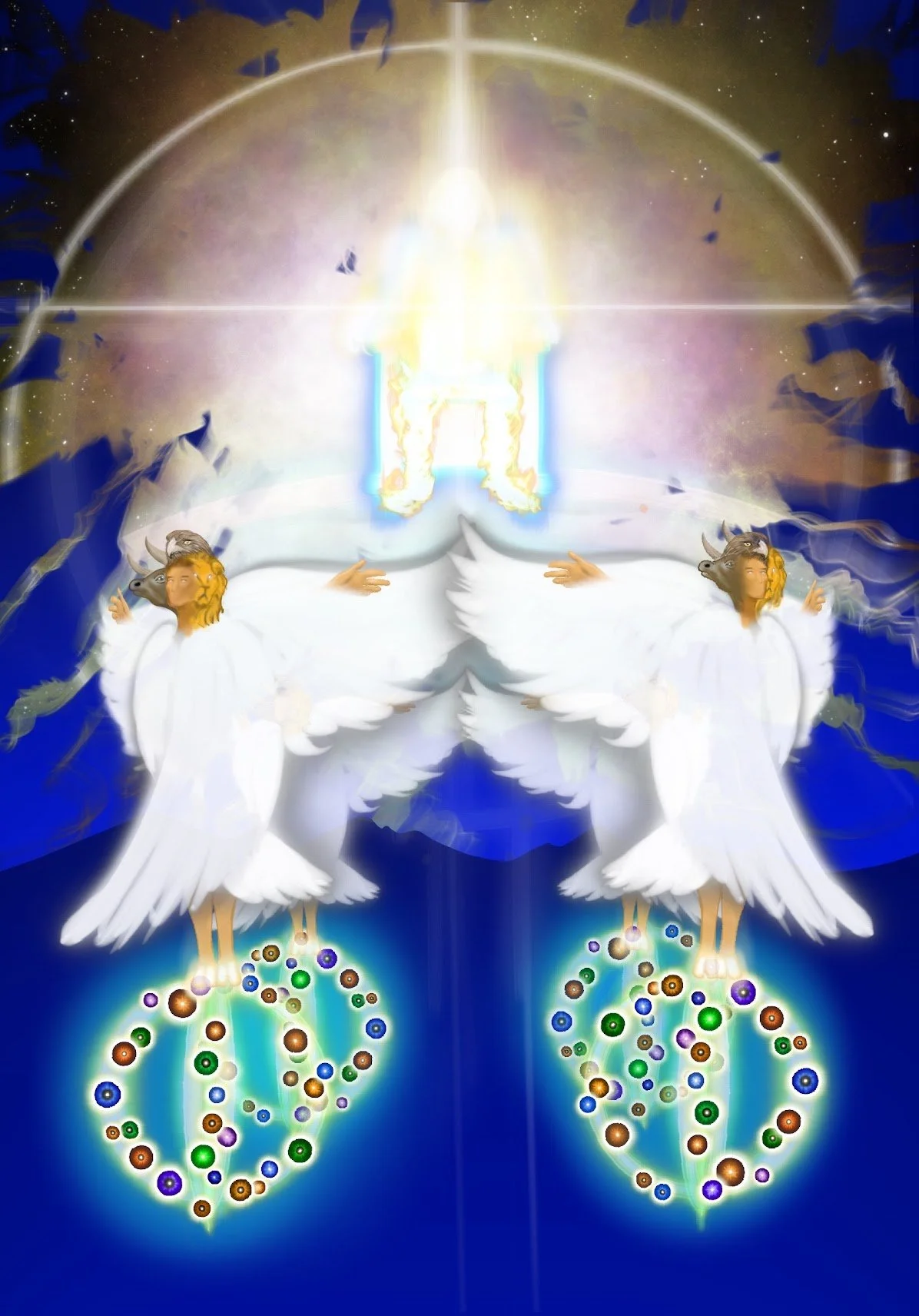 I sit with this vision because it kept crossing my path, and because it offered some relief, some fuel, some visceral reminder that life is sacred, some clarity that helps me keep going, that reminds me of our inalienable cosmic interconnection in a time of cruelty and suffering. As I work and pray, as I try to fulfill my individual assignment, as I lug this heavy, tired human body through the world guided by love and humility, it refreshes me to imagine my small breath intermingling with the Great Breath, swirling through the cosmos, surrounded by glorious four-winged creatures honoring a living god.